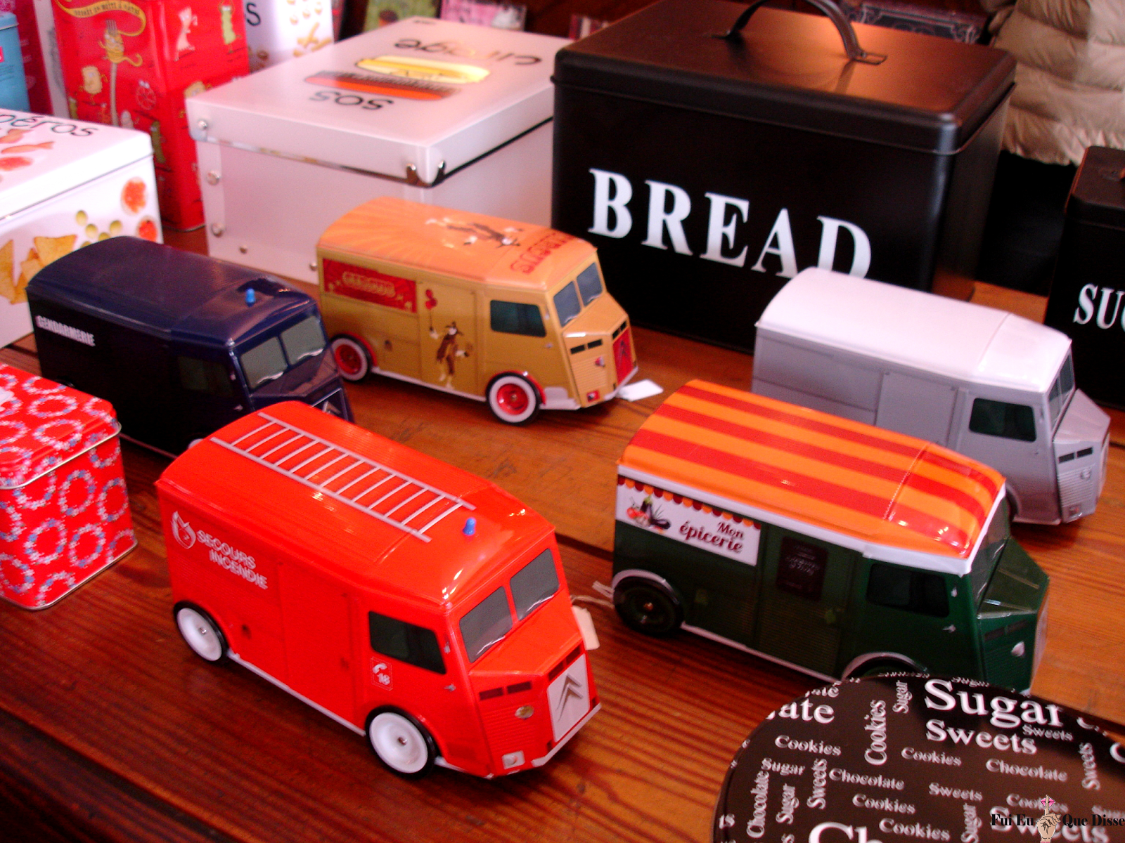 Além das caixas de cereais, vi mais umas que me deixaram encantada, que são as da foto acima. Sim, estas carrinhas fofinhas, da polícia, de segurança, de legumes, etc, são latinhas. Na foto não dá para ver, mas pode tirar-se o tejadilho e lá dentro podem guardar o que quiserem. Estas não têm necessariamente de ser para a cozinha, ficam giras em qualquer espaço e, como dá para guardar coisas, podem sempre usar isso como desculpa para as comprarem, sem terem de ouvir coisas como "isso não serve para nada, só para enfeitar", serve sim (e põem 'pra lá qualquer coisa dentro, só para justificar a coisa). Acreditem, funciona!