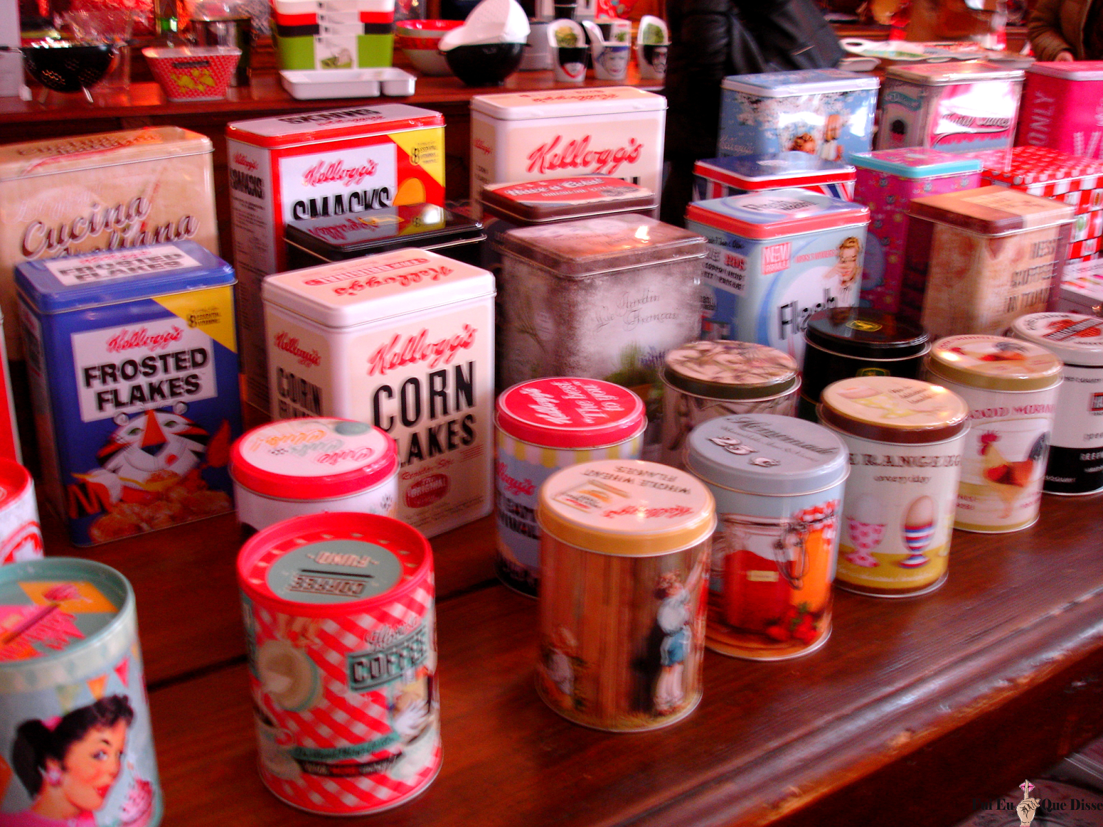 Ainda no mesmo registo vintage de marcas já nossas conhecidas, podem também encontar vários tipos de latas (imagem acima), de vários cereais da Kellogg's, de café, de biscoitos, etc. Claro, podem utiliza-las para o que vocês bem entenderem, não têm necessariamente de ser para cereais, mas digam lá se não ficavam logo com mais vontade de tomar um pequeno almoço com uns cereais, só para admirarem a latinha? Acho-as super giras para decorar a cozinha e, tenho a certeza absoluta que , quando tiver a minha casa própria (esperemos que em breve), vou ter muitas coisinhas deste género.